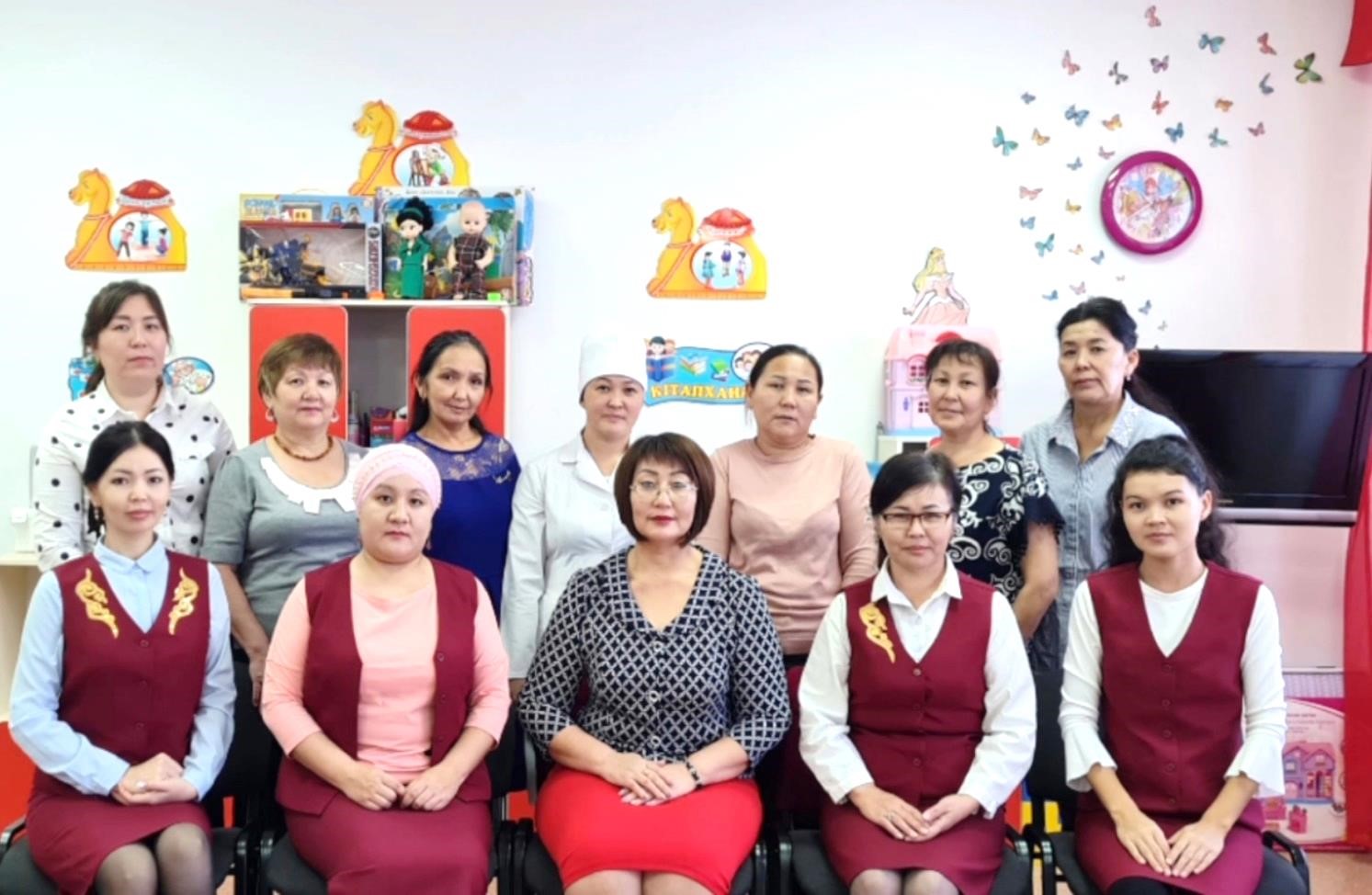 Педагогтар саны-7 адам, директор, әдіскер, 4 тәрбиеші, 7 кіші қызметкер еңбек етеді. Педагогтардың 1 -жоғары санатты, 2-екінші санатты, 3-санатсыз, 1-модератор біліктілігі бар.
