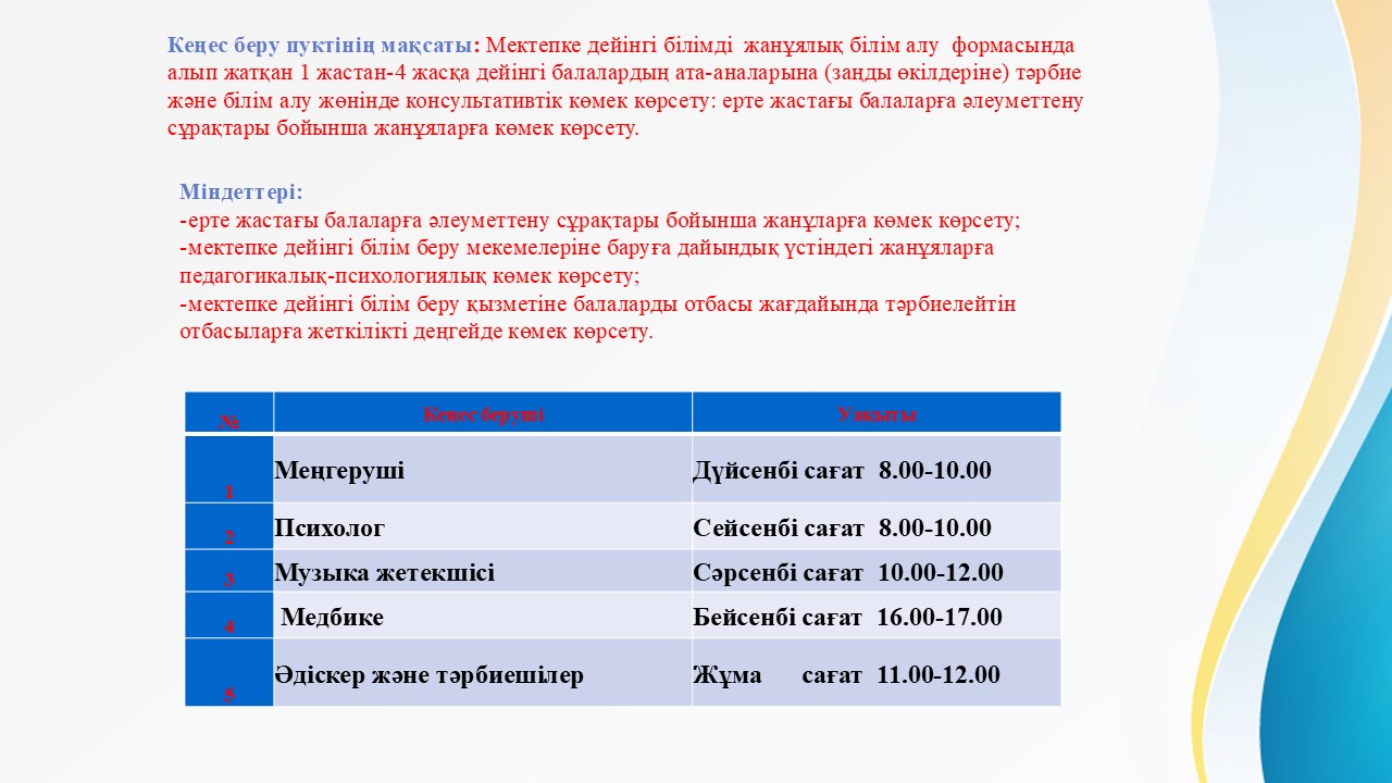 2 Жұмыс кестесі