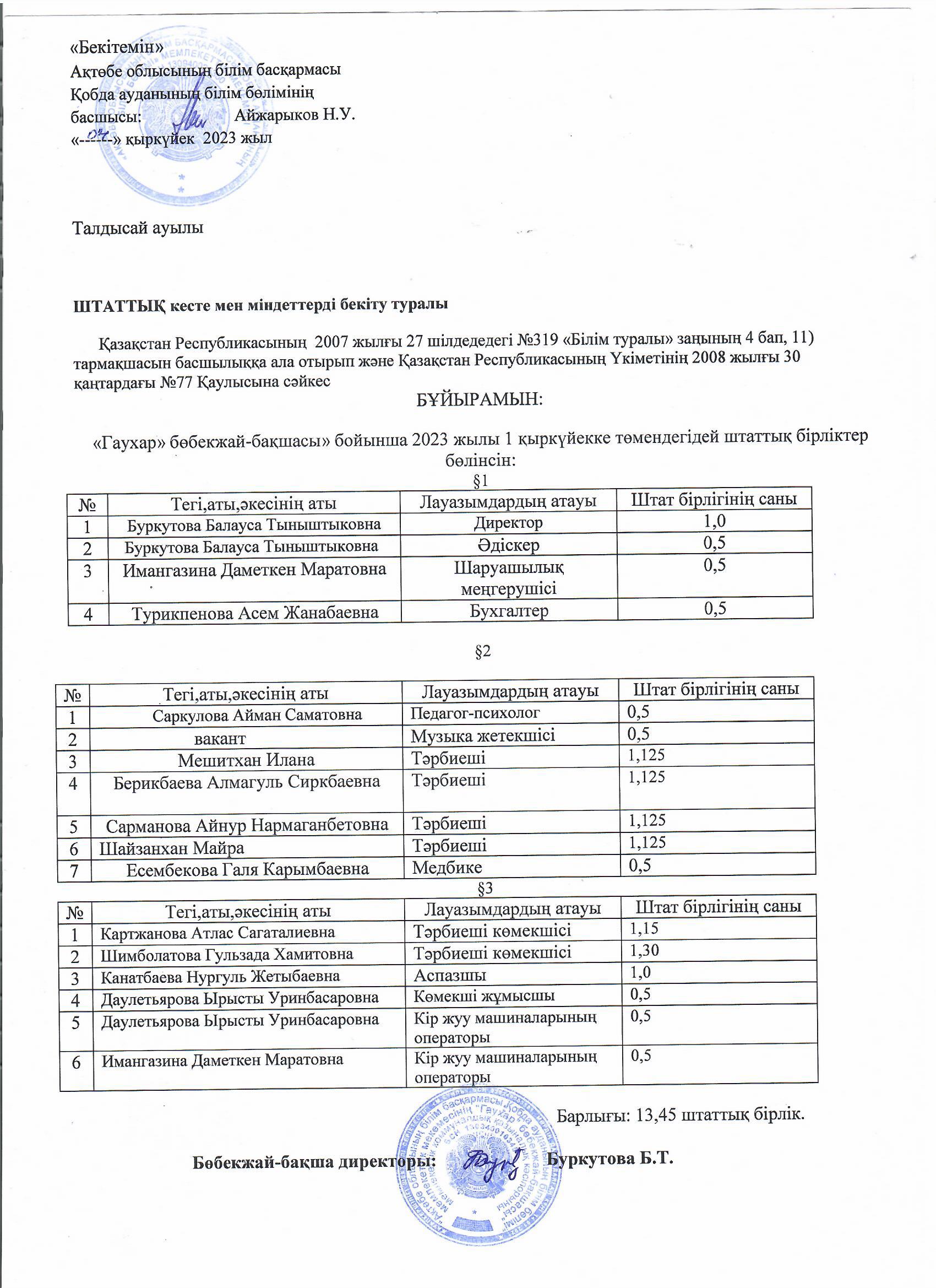 Штаттық кесте